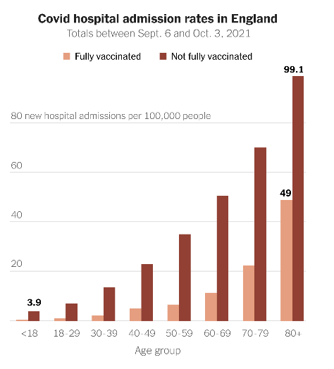 We have known almost from the beginning Covid hits age groups very differently. The New York Times shows us graphically the great danger to octogenarians versus the less than flu for children. Unless you have some co-morbidity, people under 50 have little likelihood of hospitalization, much less dying from covid. For a person in their 80s, the chance of dying from the disease multiplies. The daily covid death toll is dominated by those over 65. While vaccination cuts your risk from the disease, the elderly show evidence of waning protection. Common sense: those over 65 and at-risk need more help.