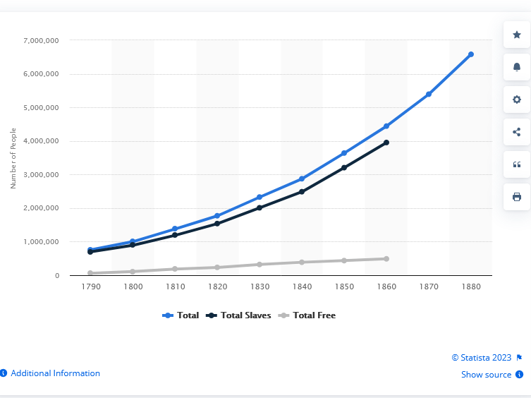 Black and Slave population of the U.S. from 1790-1880: