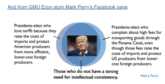 As we enter 2025, some ’24 mysteries remain unresolved. Donald Trump ran his successful campaign with a variety of seemingly contradictory positions. I was reminded of these when the Cafe Hayek blog pointed to economist Mark Perry’s illustration:
