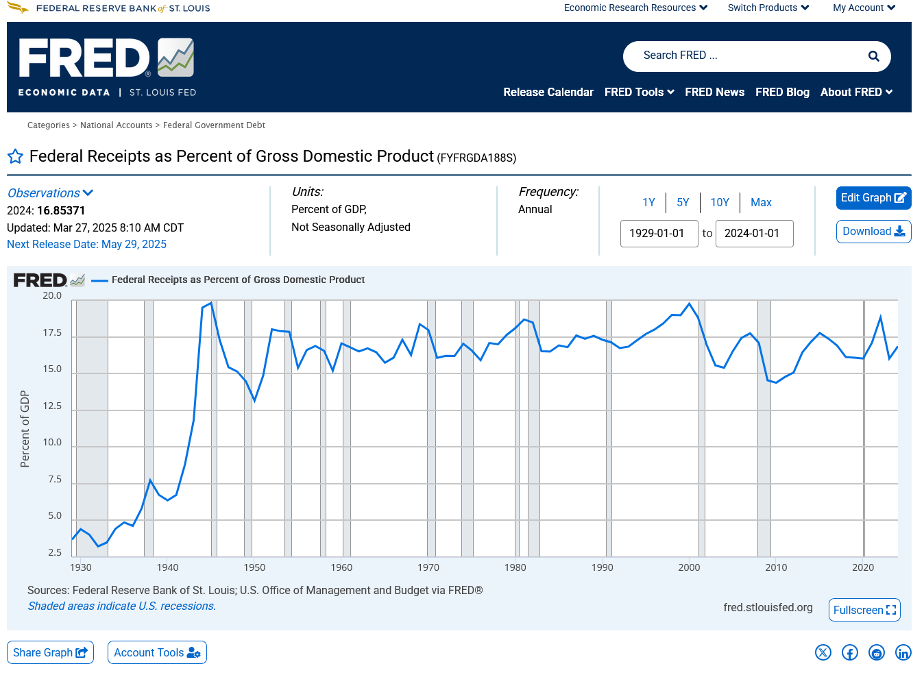 As this chart shows, whether we raise taxes as we did under Roosevelt, the elder Bush, Clinton, and Obama, or cut them under Reagan, the younger Bush, and Trump, Federal receipts since World war II as a percentage of GDP varied only a point on either side of 17.5%. People change their behavior to adjust to tax policy.