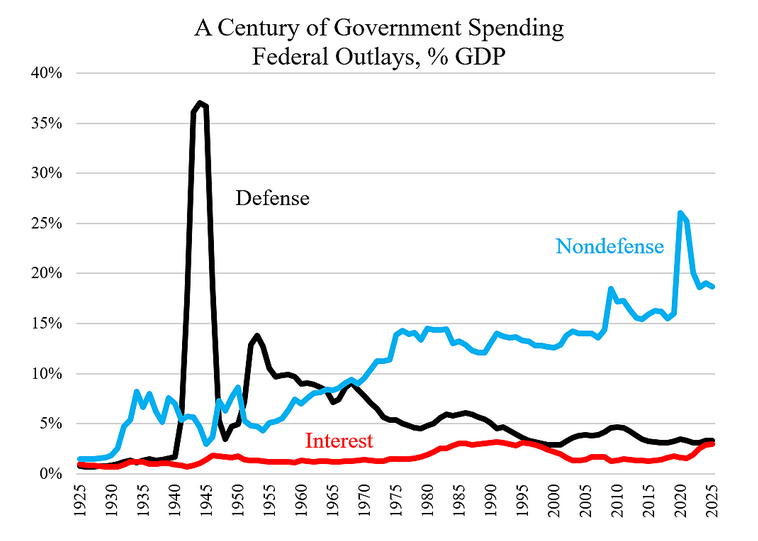 If we want to know why we’re so in debt, one has to look at the growth of non-defense spending: